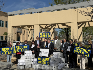Riverside, CA – Supporters of a California voter identification ballot initiative turned in what they said were more than 1.3 million petition signatures Monday outside the Riverside County Registrar of Voters headquarters, a milestone that could put the proposal before voters in the Nov. 3 election if enough signatures are validated. The initiative needs roughly 87,000 valid signatures to qualify.